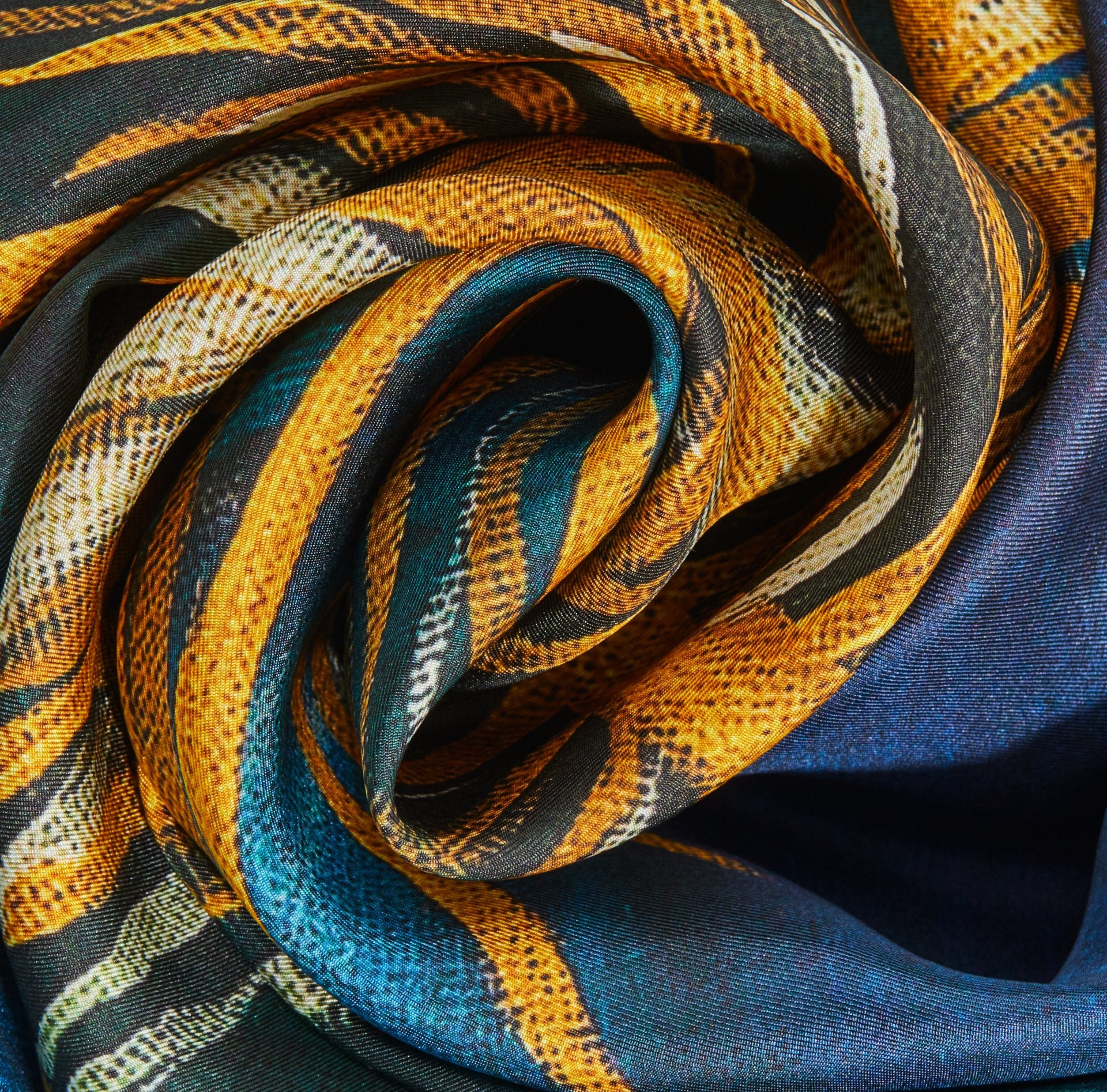It was digitally printed on premium European silk, manually crafted in a small manufacture, where skilled seamstresses finishes them, with an elegant rolled/machine hem.